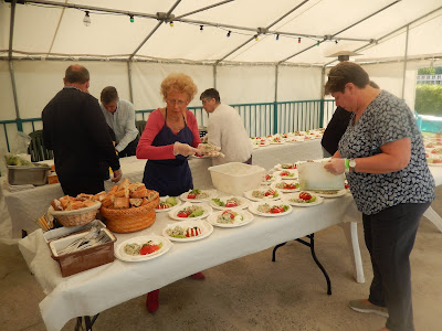 Alors qu'arrivent les premiers participants, on prépare les agapes, entrées, gigots et frites.